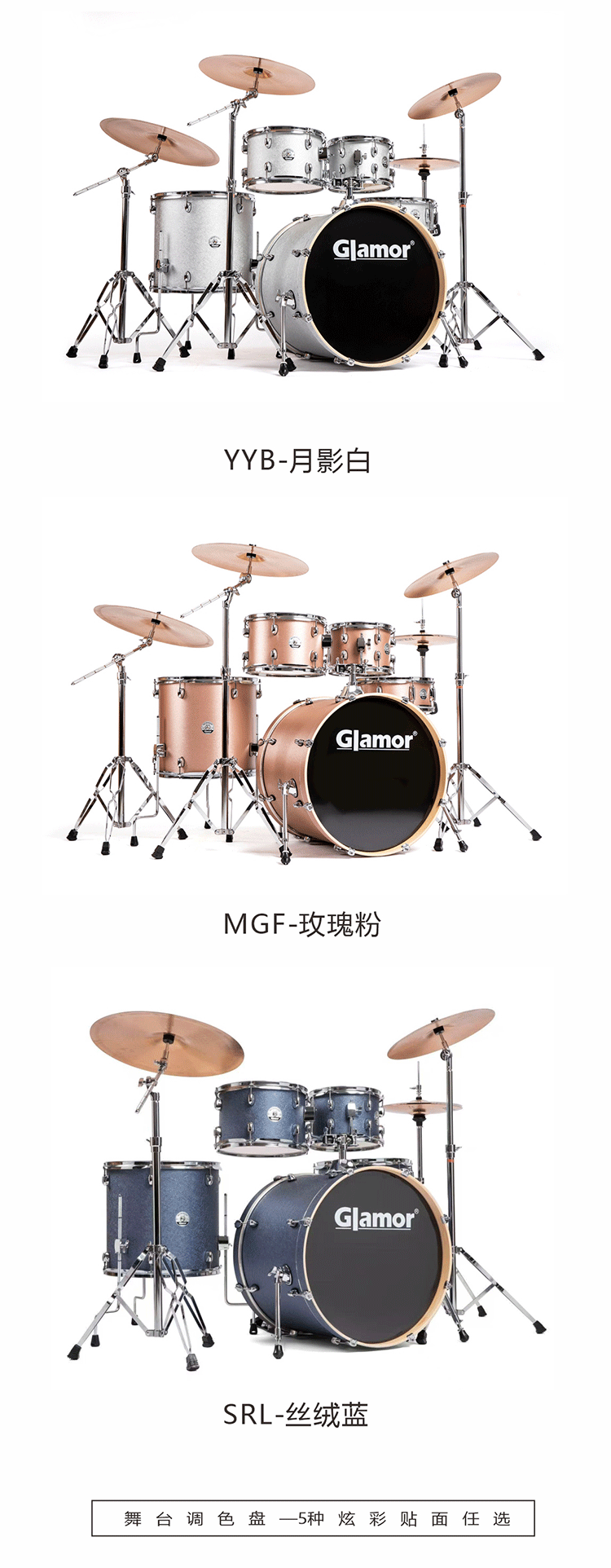 丝绒蓝、玛瑙金、玫瑰粉、月影白、苍松绿